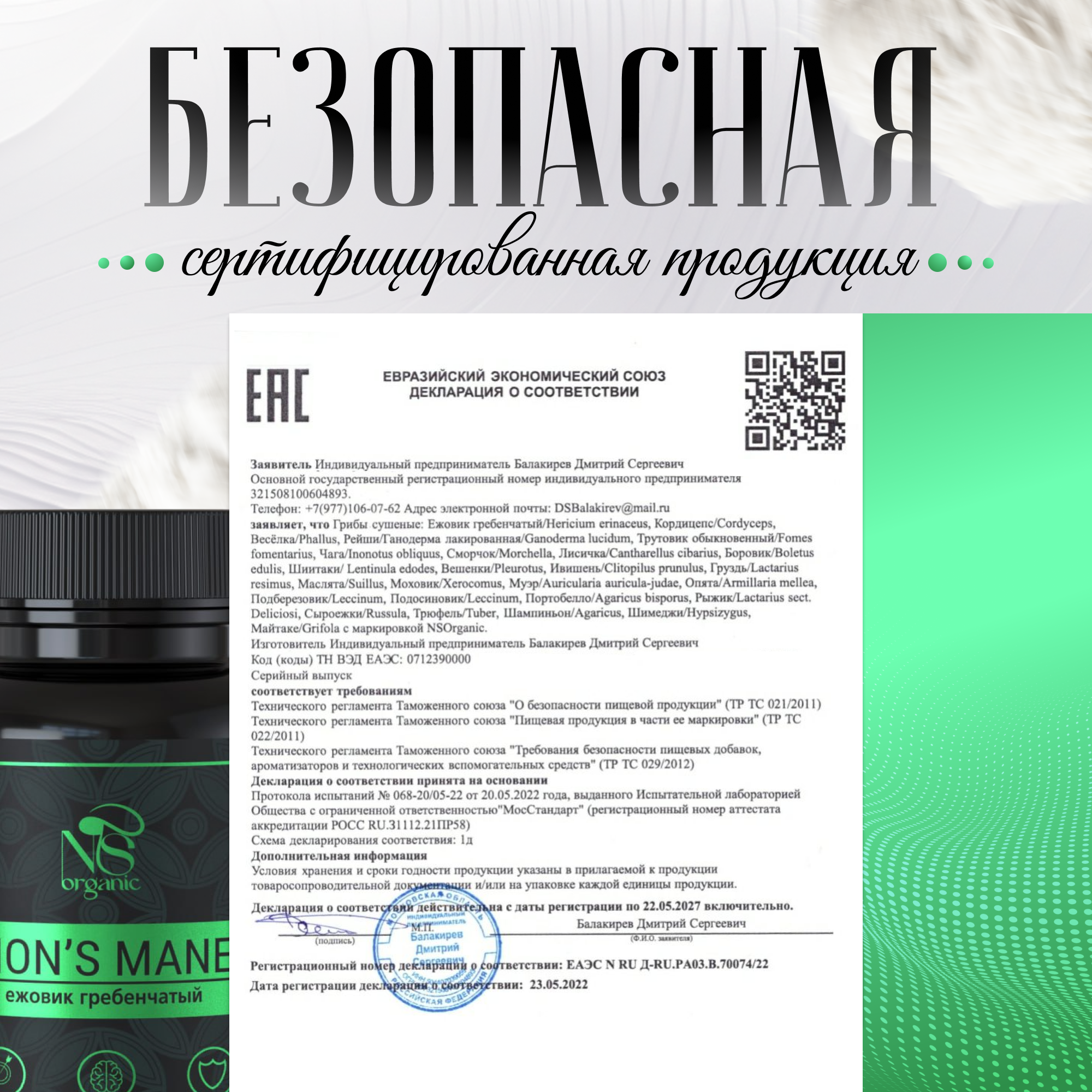 Капсулы содержат 100% ежовика гребенчатого, что обеспечивает максимальную эффективность и удобство применения. Они не содержат наркотических или психотропных веществ.
