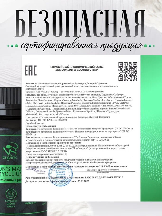 Ежовик гребенчатый рода Hericium (герициум) – ценнейший и редкий гриб, широко применяемый в традиционной китайской и европейской медицине. Эти удивительные лекарственные грибы, благодаря своему необычному внешнему виду, имеют множество забавных названий: львиная грива, lions mane, обезьянья голова, грибная лапша, дедова борода, борода сатира, воздушная рыба, шишигашира, бородатый зуб. Французы зовут его пом-пом, японцы – ямабушитаке, в Китае – хоутоугу. Ежевик ценится не только за свои превосходные вкусовые качества, как деликатесный веганский продукт здорового питания или еда - суперфуд. Умный гриб обладает поистине уникальными свойствами. Это натуральный природный ноотроп, антистресс, антидепрессант. Синтетические ноотропные средства искусственно подстегивают и стимулируют выработку биологически активных веществ. Ежевик мягко запускает нейрогенез, восстанавливает нарушенные нейронные связи, обеспечивает восстановление и защиту нейронов. Он обеспечивает восстановление когнитивных функций головного мозга, применяется для улучшения памяти, мозговой активности, предотвращает и лечит такие недуги, как деменция, болезнь Альцгеймера и другие неврологические и нейродегенеративные заболевания. Экстракт ежовика помогает нормализовать сон, укрепить эмоциональное здоровье, избавит от тревожности, поможет забыть, что такое депрессия и выгорание, синдром дефицита внимания. Прекрасное природное успокоительное лекарство. Препарат из ежевика гребенчатого благотворно влияет на желудок и кишечник, нормализует обмен веществ и уровень сахара в крови. Он применяется для снижения веса при лечении ожирения. Микродозинг ежовика улучшает кровообращение, препятствует образованию тромбов; обладает антиоксидантным и противоопухолевым действием. Отличное решение для повышения иммунитета, энергии и общего тонуса организма. Хорошо зарекомендовал себя как противовоспалительное и антибактериальное средство. Благотворно влияет на организм, подходит как взрослым женщинам, так и мужчинам. Наша пищевая добавка изготавливается из качественного, экологичного сырья, выращенного в России. Продукция прошла лабораторные испытания, сертифицирована и абсолютно безопасна. Выпускается в двух формах: желатиновые капсулы (60, 90 штук) и порошок, содержащий сухие измельченные грибы (плодовое тело гриба и мицелий в равных пропорциях). Сушеный молотый грибной зерномицелий (это своеобразные корни или семена ежовика, проросшие в питательном и очищенном зерновом субстрате) обладает повышенной концентрацией полезных веществ – эринацинов. Именно они отвечают за рост и восстановление нервных клеток и их оболочек. Оптимальный состав для улучшения работы мозга и нервной системы. Противопоказанием к применению является беременность, период лактации, детский возраст, индивидуальная непереносимость. Мицелий не является БАД и лекарственным средством! Мы будем благодарны, если Вы поделитесь в отзывах своим опытом применения препарата, чтобы помочь нам стать лучше, а другим покупателям – сделать правильный выбор!