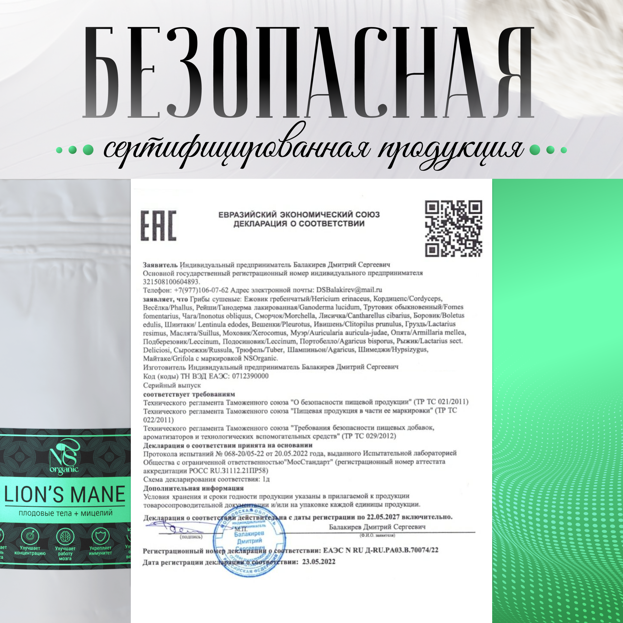 Ежовик гребенчатый, ежевик, lions mane + мицелий, порошок 100 грамм.