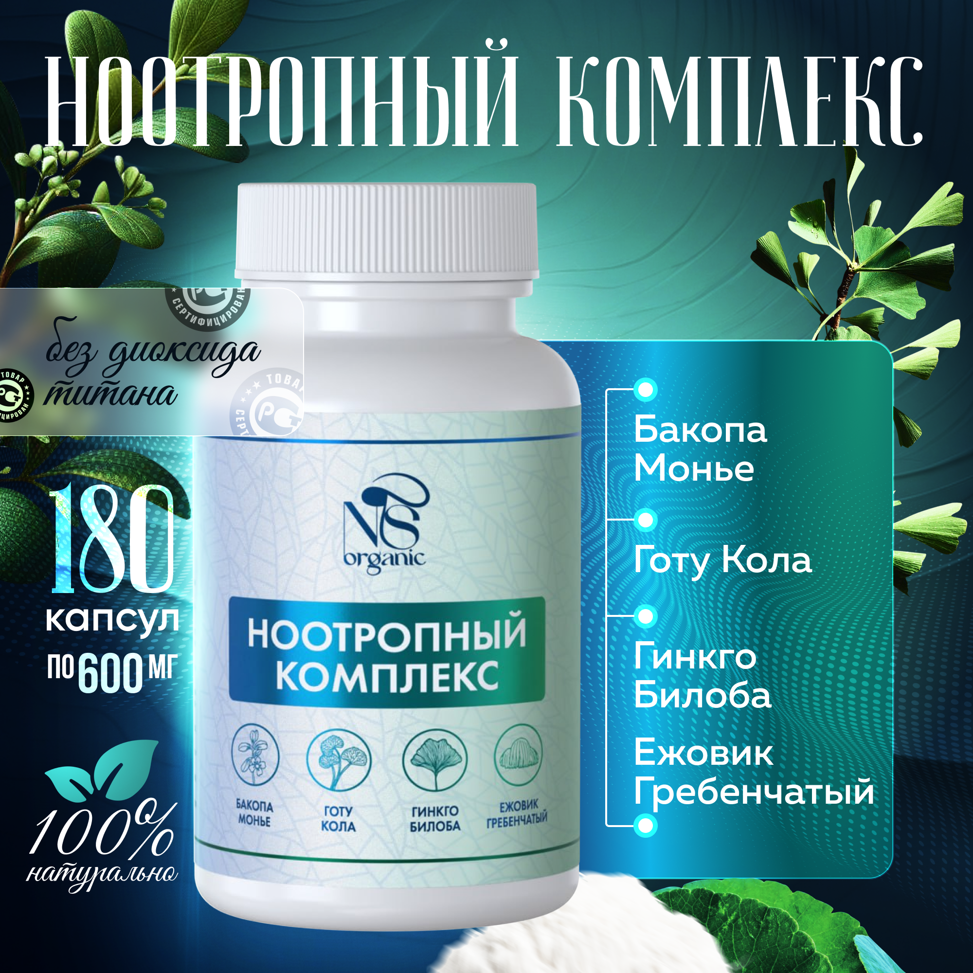 Натуральная комплексная пищевая добавка для восстановления нервной системы и улучшения когнитивных способностей мозга. В состав ноотропного комплекса входят экстракты полезных целебных растений, обладающих направленным действием на рост нейронов. Гриб ежовик гребенчатый известен как природный ноотроп, антидепрессант. Стимулирует рост нейронов, улучшает общее самочувствие, повышает работоспособность. Незаменим в период реабилитации после травм, повышенных умственных и физических нагрузок. Способствует сохранению памяти, настроения и спокойствию в целом. Нейромедиаторный эффект гинко билоба помогает бороться с беспокойством и тревожностью, проявлениями стресса и депрессии. Бакопа Монье разгоняет метаболизм и передачу нервных импульсов. Отличное средство от бессонницы, снижает уровень стресса. Готу кола или центелла азиатская, известна своим антисклеротическим действием, хороша при возрастных изменениях мозга. Эта пищевая добавка – настоящий витамин для ума. Показана при СДВГ – синдроме дефицита внимания и гиперактивности. Облегчает его проявления – подвижность, излишнюю импульсивность. Можно принимать мужчинам и женщинам для терапии хронической усталости, снижении способности к обучению и восприимчивости, как легкое успокоительное средство. Смягчает симптомы атеросклероза, болезни Альцгеймера, дислексии, деменции. Сохраните эмоциональное и физическое здоровье со специально разработанным ноотропным комплексом.
